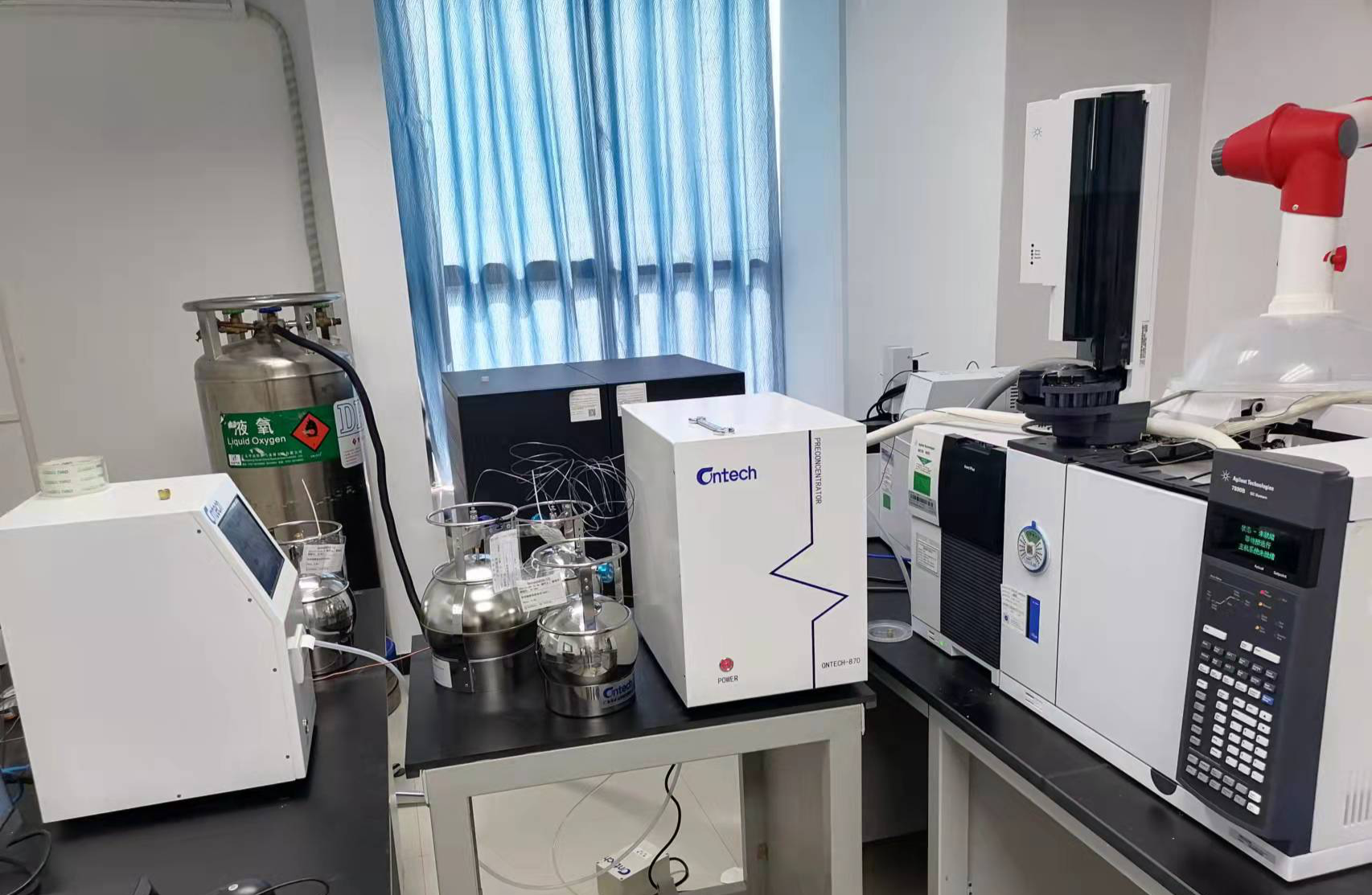 2022年初坤誠(chéng)公司進(jìn)行環(huán)境空氣VOCs手工采樣檢測(cè)項(xiàng)目擴(kuò)項(xiàng),依據(jù)標(biāo)準(zhǔn)為《HJ 759-2015 環(huán)境空氣 揮發(fā)性有機(jī)物的測(cè)定罐采樣 氣相色譜-質(zhì)譜法》,新購(gòu)置Ontech870液氮制冷預(yù)濃縮儀、Ontech850高精度靜態(tài)稀釋儀,加之原有的GC-MS、清罐儀和蘇瑪罐已經(jīng)具備HJ 759規(guī)定的環(huán)境空氣中丙烯等 67 種揮發(fā)性有機(jī)物測(cè)定的硬件需求。